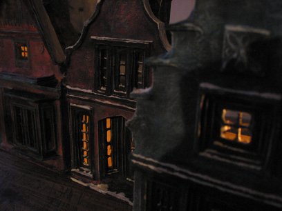 Kersthuis gebouwd in de oude stijl. Het huis voor, DE CHOCOLATERIE, is gebouwd in 2001, het huis achter is gebouwd in 2002.